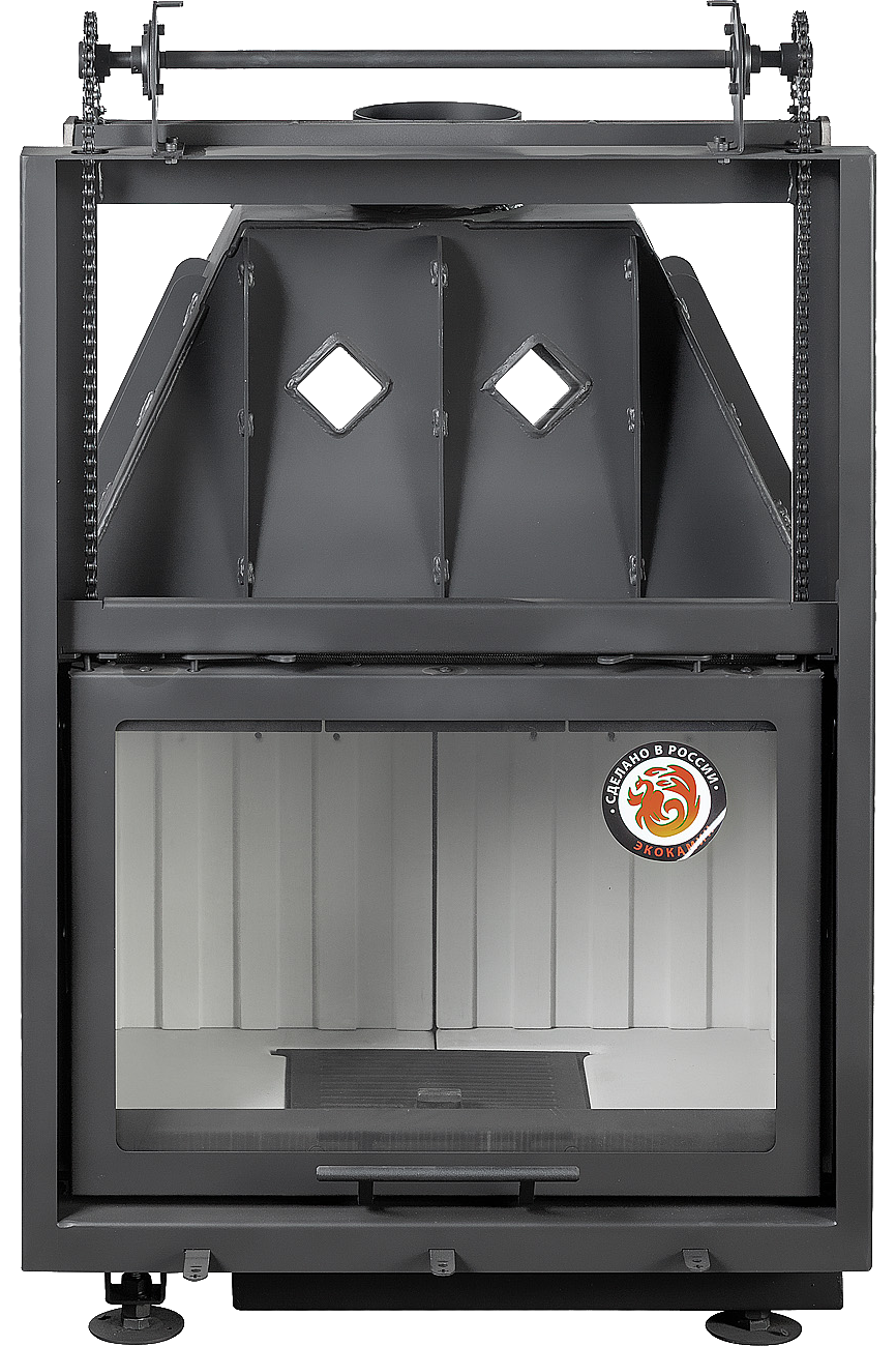 Топка применяется для обогрева жилых помещений, в режиме непрерывной эксплуатации от 6 до 24 часов в зависимости от режима горения. Периодичность закладки дров, с интервалом 45-90 мин. В экономичном режиме горения интервал закладки дров может быть от 3 до 5 часов. В качестве топлива применяются сухие дрова с влажностью не более 18%. Все топки разработаны таким образом, что их можно топить, с открытой и закрытой дверцей топки, независимо от наличия или отсутствия подъемного механизма. Мы рекомендуем топить топку с закрытой дверцей, в этом случае вы получаете максимальную тепловую эффективность и безопасность. Топки торговой марки «Экокамин» изготовлены в соответствии с ЕАС ТР ТС 010/2011 «О безопасности машин и оборудования» и соответствуют Европейским стандартам EN 13229, а также проходят строгий внутренний контроль.