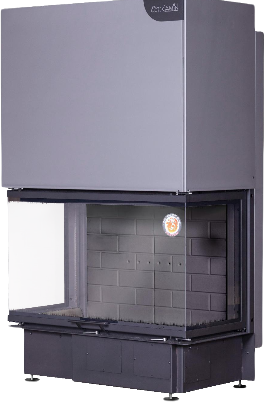 Каминная топка Экокамин Дельта 1000 B три стекла принтинг черный шамот