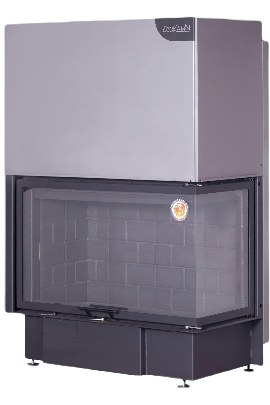 Каминная топка Экокамин Дельта 1000 RB два стекла принтинг правая черный шамот