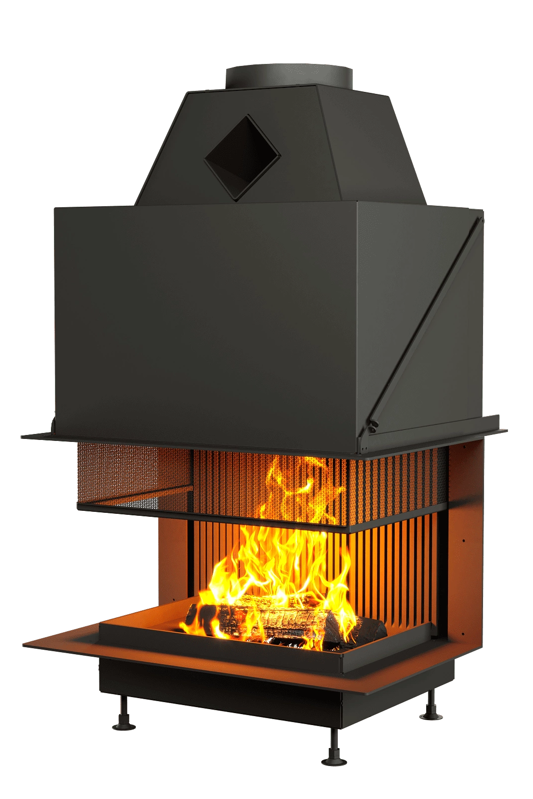 Защитная сетка, выполненная в виде сот — разработка Астов, имеет высокий угол обзора на пламя. Такое решение удобно тем, что даже в закрытом состоянии не теряются ощущения от открытого огня.
