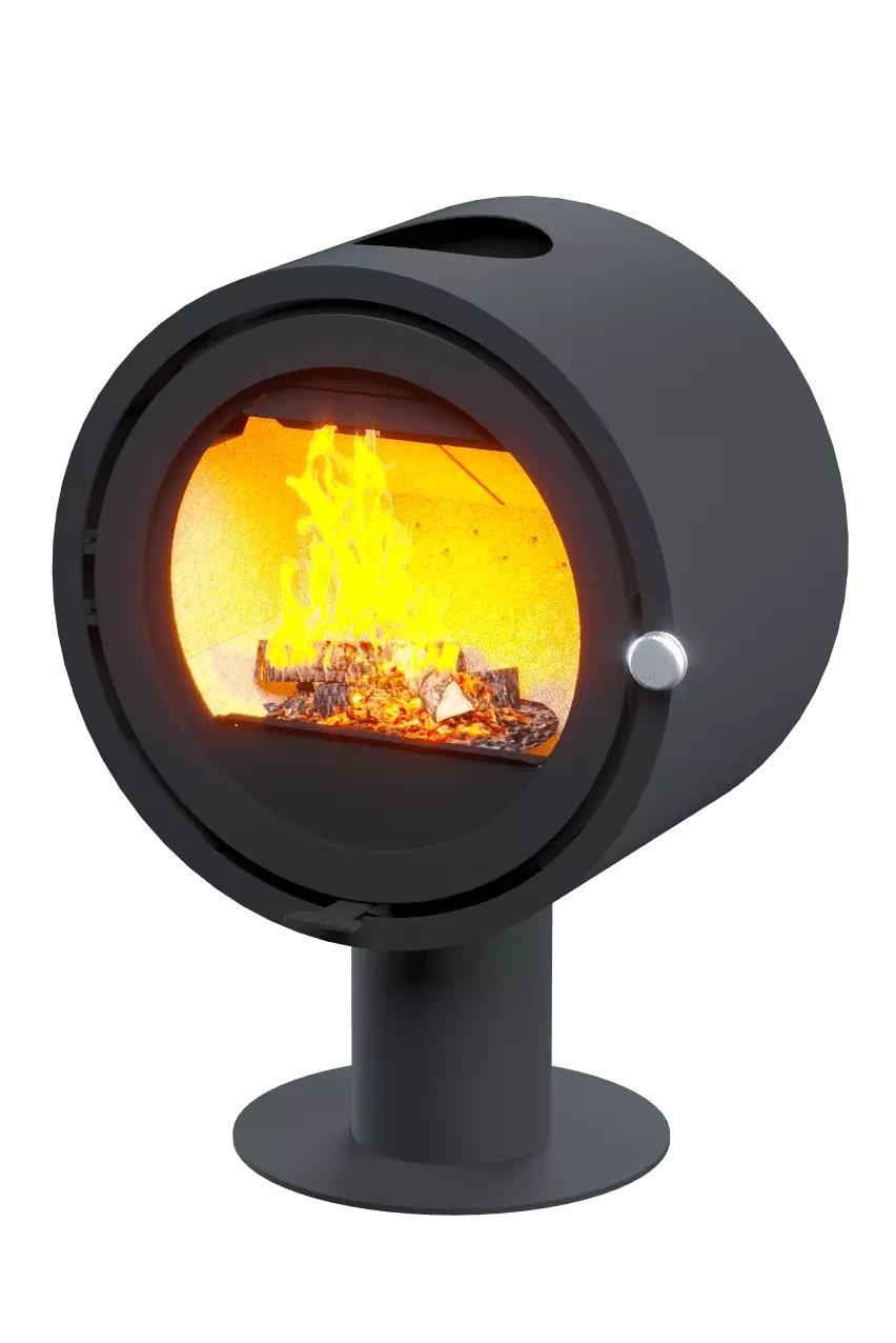 Нестандартный вид печи-камина D 600, круглая дверца и подовое горение – вот отличительные особенности этой модели.