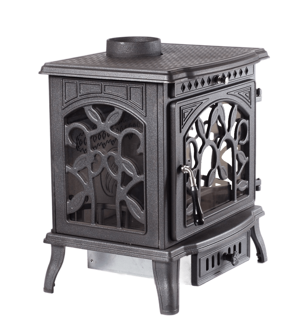- оригинальную устойчивую конструкцию со скромными габаритами и тремя жаростойкими стёклами;