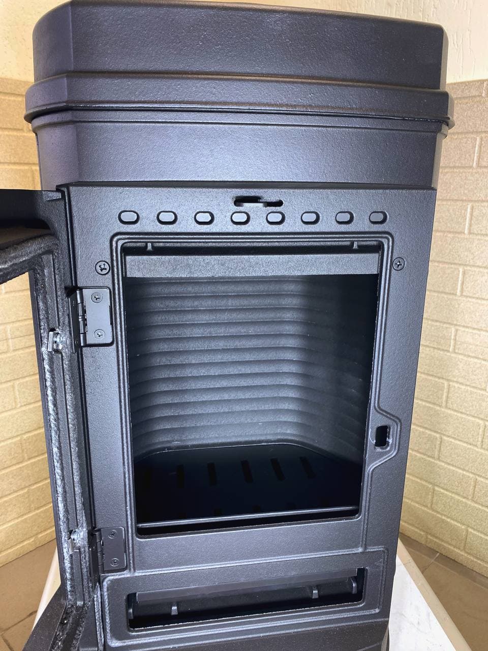 Подача воздуха в топочную камеру осуществляется с помощью заслонки, что позволяет регулировать режим горения. Подача воздуха для вторичного дожига дымовых газов повышает КПД печи и позволяет снять с печи максиму энергии для отопления помещения.