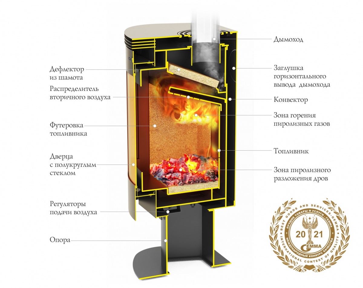 Элегантный и лаконичный дизайн печи-камина Визиера с первого взгляда выделяет этот камин среди подобных изделий российского производства. В первую очередь – это полукруглое жаропрочное стекло, через которое удобно наблюдать за красивой картиной пиролизного горения древесины. Камин изготавливается в цветовом исполнении – черная бронза. Серийно выпускаются две модели камина: «Визиера» и «Визиера 360°» – поворотная.