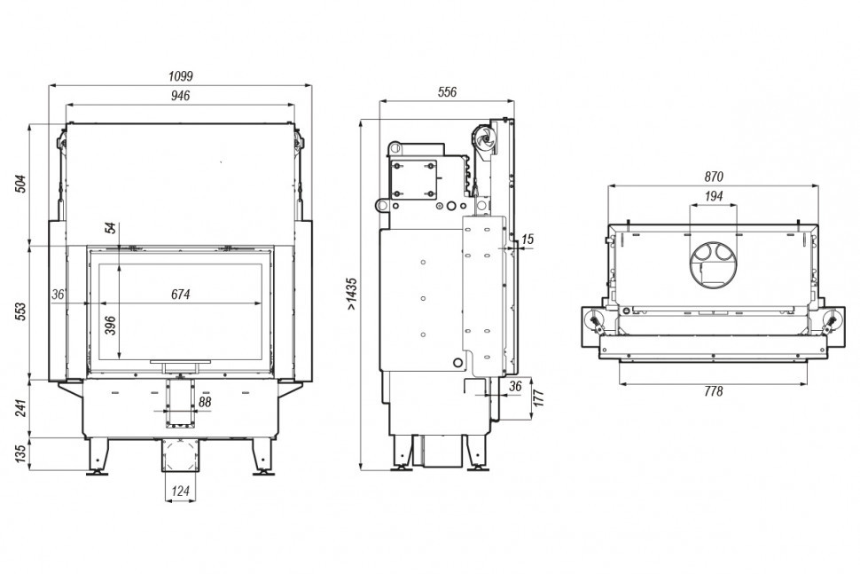 Каминная топка DEFRO HOME NAVI ME G, 17 кВт, 778/553мм, с водяным контуром, гильотина